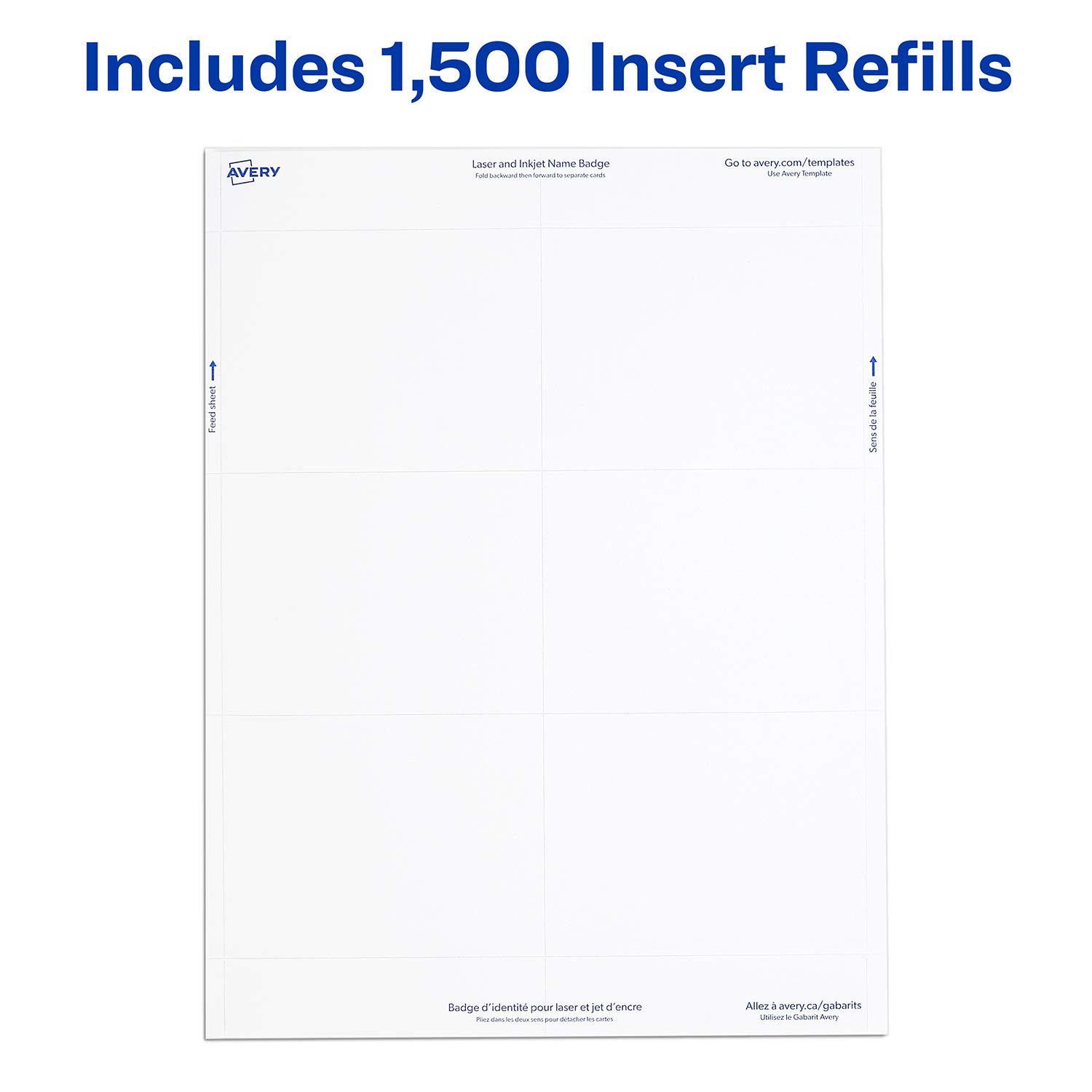 Avery Vertical Name Badge & Ticket Inserts, 6" x 4-1/4", 100 Inserts (8522) Avery Name Badge Inserts, Print or Write, 3 x 4 Inch, 300 Card Stock Refills (5392), White. ... Avery Design & Print also includes hundreds of free designs and Avery templates to help you easily create professional-quality personalized name tags in no time. The white micro-perforated blank name badge inserts and tickets are printable on both ...