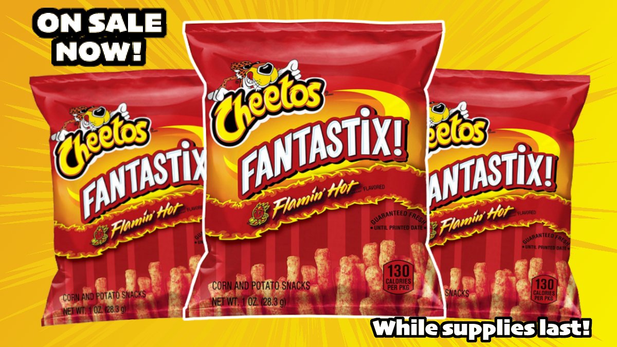 Flamin' Hot Cheetos Ignite Nutrition Debate in Schools The "new bigger size" bag of Flamin' Hot Cheetos contains 3 3/4 oz., or nearly 680 calories, 44 grams of fat, and 40 percent of day's recommended sodium, according to the package nutritional label.