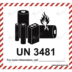 UN3481 Shipping Label | HCL Label - hclco.com UN3481 Shipping Label - Affix this label to the outside of your package or box. Lithium-Ion Batteries contained in equipment or packed with equipment. There is a space for additional information, like a contact phone number. This label uses graphics to clearly illustrate the nature of the package. Share your knowledge of this product.