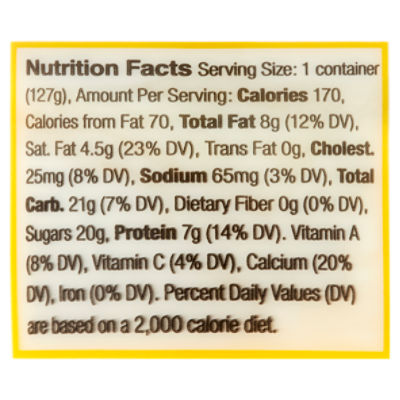 Noosa Yoghurt, Blueberry: calories, nutrition analysis & more ... Kosher or halal gelatin often comes from fish. Nutrition Serving Size: 1 container (127g) Amount per Serving My Daily Value Calories 150 Kcal 9% Total Fat 6 g 10% Saturated Fat 4 g 24% Trans Fat 0 g 0% Cholesterol 20 mg 7% Sodium 65 mg 3% Potassium 282 mg 6% Total Carbohydrate 18 g 8% Dietary Fiber 0 g 0% Sugars 17 g 24% Added Sugars 10 g 42%