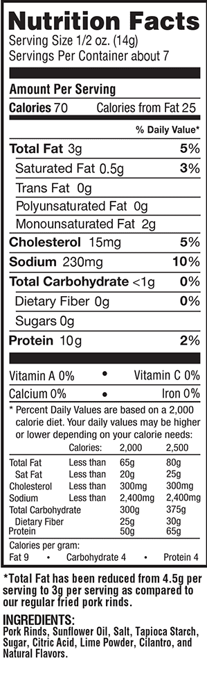 Pork rinds nutrition label