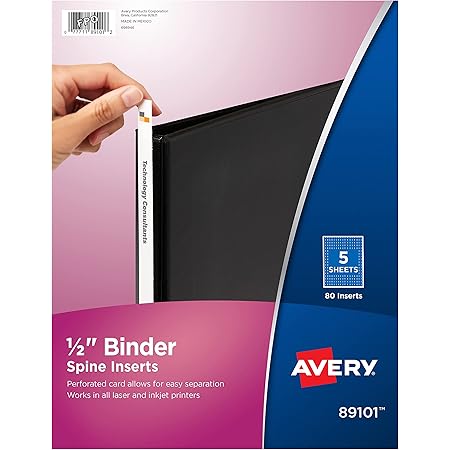 Create Spine Inserts for Presentation Binders using Templates Under Binders, click on Binder Spine Inserts to narrow your search. Then, under Template Types, click on "Browse Avery Designs" Step 3: Choose a Template You'll find a variety of predesigned templates to choose from. Click on the Binder Spine Insert link for the template you want to use. Select the right size binder for your Binder Spine Insert. Avery® Binder Spine Inserts, for 3 inch binder, 17042 Label binder spines for an organized and professional look. Easy to insert into binder spine. This website uses cookies to improve the browsing experience. ... Avery ® Durable View Binder Template. 3", Slant D Rings. 17042. Avery Design & Print. Add logos, images, graphics and more; One-Touch Classic 3-Ring Binder, 1.5" Spine - Bindertek Customizable spine label and table of contents; Steel-reinforced bottom edges for added longevity; Steel-rimmed finger hole for easy shelf access; Acid-free binder covers protect documents long term; Specifications: Spine Width: 1.5" 1" Rings; Binder Dimensions: 11.5"W x 11.5"H x 1.5"D; Fits U.S. Letter-Size: 8.5" x 11" Paper
