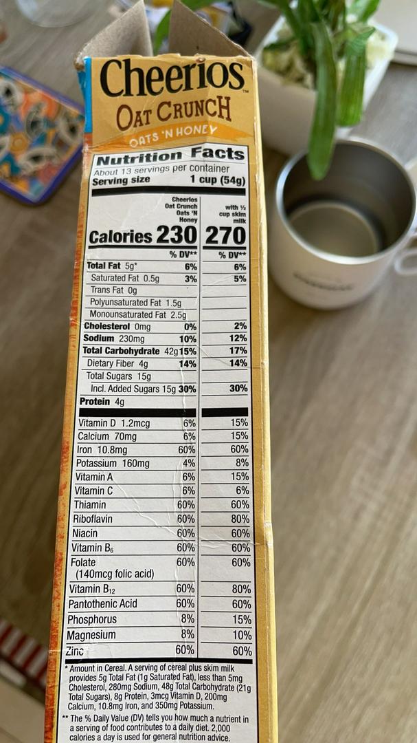 Chocolate cheerios nutrition label