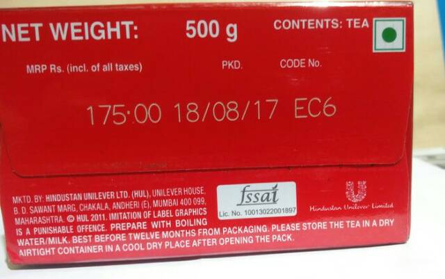 Brooke Bond Red Label Tea India, 31.7 oz - amazon.com Brook Bond Red Label Fine Quality Loose Leaf Black Tea (63.4 oz / 1800 G) 188 1 offer from $27.00 Brooke Bond Red Label Black Tea, 100 Tea Bags, Fine Quality, 7 oz (200g) - Unilever 139 8 offers from $8.98 Brooke Bond Red Label -Natural Care (5 Ayurvedic Ingredients)500g 4,121 22 offers from $9.45