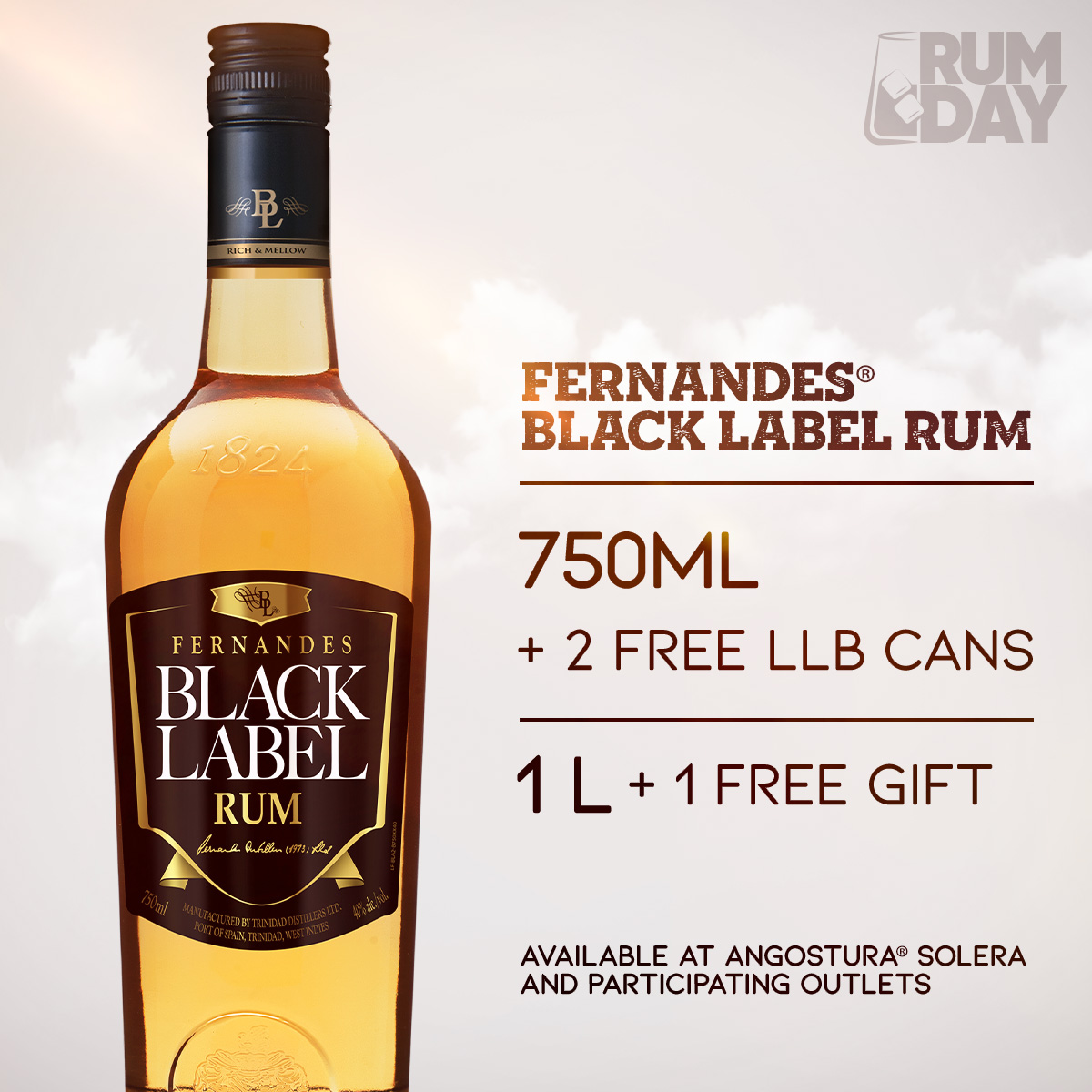 Fernandes Black Label Rum - Angostura Fernandes Black Label rum has a distinct aroma and a pleasing medium-dry taste. It is smooth on the palate and is the undisputed leader in the amber rum category in Trinidad and Tobago. It is an essential element for the number one drink in the world, rum and coke.