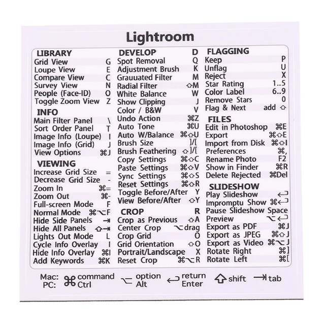 helpx.adobe.com › lightroom-classic › helpKeyboard shortcuts for Lightroom Classic - Adobe Inc. Apr 27, 2021 · Assign a red label. 6. 6. Assign a yellow label. 7. 7. Assign a green label. 8. 8. Assign a blue label. 9. 9. Assign a color label and go to next photo. Shift + 6 - 9. Shift + 6 - 9. Flag photo as a pick. P. P. Flag photo as a pick and go to next photo. Shift + P. Shift + P. Flag photo as a reject. X. X. Flag photo as a reject and go to next ... Adobe Exchange All products Acrobat Pro After Effects Animate Audition Bridge Dreamweaver Illustrator InCopy InDesign Lightroom Lightroom Classic Muse Photoshop Prelude Premiere Pro XD. Categories. price. Are you using a new Windows ARM based device? If so, extensions and plug-ins are not yet supported. Learn more. Featured. Failed to load featured apps. 0 results in All. Sort by: …