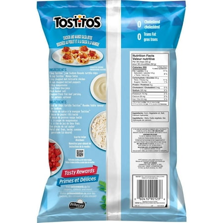 Tostitos valeur nutritive. Tostitos Tortilla Chips Nutrition Facts - GroceryNutrition.org There are 140 calories in a serving of Tostitos Tortilla Chips. Most of those calories come from fat (43%) and carbohydrates (52%). -- Advertisement. Content continues below -- Tostitos Tortilla Chips Nutrition Facts *All percent daily value figures are based on a 2,000 calorie diet. Nutritional information source: US Food & Drug Administration Tostitos Nutrition Facts & Calories Tostitos. 110301. Tostitos. LOG. View Diet Analysis Close. KEY FACTS (learn about health benefits or risks) Have high calorie density - this means that the amount of calories you are getting from an ounce is high (0.17 cal/oz). ... NUTRITION FACTS (% of daily value based on 2000 calories per day) Calories in Tostitos - Menu With Nutrition Calories in Tostitos Browse all the foods and products from Tostitos and get their nutritional information. Cheese Spreads Nacho Cheese Dip, Medium 1 package (3.6 oz) 160 Cal Tortilla Chips Tortillas, Flatbreads, Wraps Party Size Tortilla Chips Scoops, Fajita 1 about 10 chips (1 oz) 140 Cal Dips Salsas Others We Recommend Campbell's Nutrition TOSTITOS® Chunky Salsa Medium However, we recommend that you check the label on a specific product for the most current and accurate nutritional information. If you need assistance, please contact Consumer Relations toll-free at 1-800-352-4477 Monday through Friday between 9:00 a.m. and 4:30 p.m. Central Standard Time.
