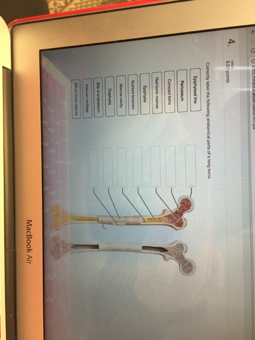 Solved Correctly label the following anatomical parts of a - Chegg Question: Correctly label the following anatomical parts of a long bone. Red bone Periosteum Epiphysis Site of endosteum Compact bone Marrow cavity Epiphyseal line This problem has been solved! See the answer Show transcribed image text Expert Answer 100% (32 ratings)