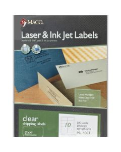 Maco ML-3000: White Laser / inkjet Shipping Address Labels, Inkjet ... Maco ML-3000 [ MACML3000 ]: White Laser / inkjet Shipping Address Labels, Inkjet / laser Printers, 1 x 2.63, White, 30 Labels / sheet, 100 Sheets / box. Ideal for bulk mailings & identification. Permanent adhesive. Wont jam in laser or inkjet printers. Acid-free & lignin-free. Compatible with most popular label software programs so you can create quality labels at your desk.