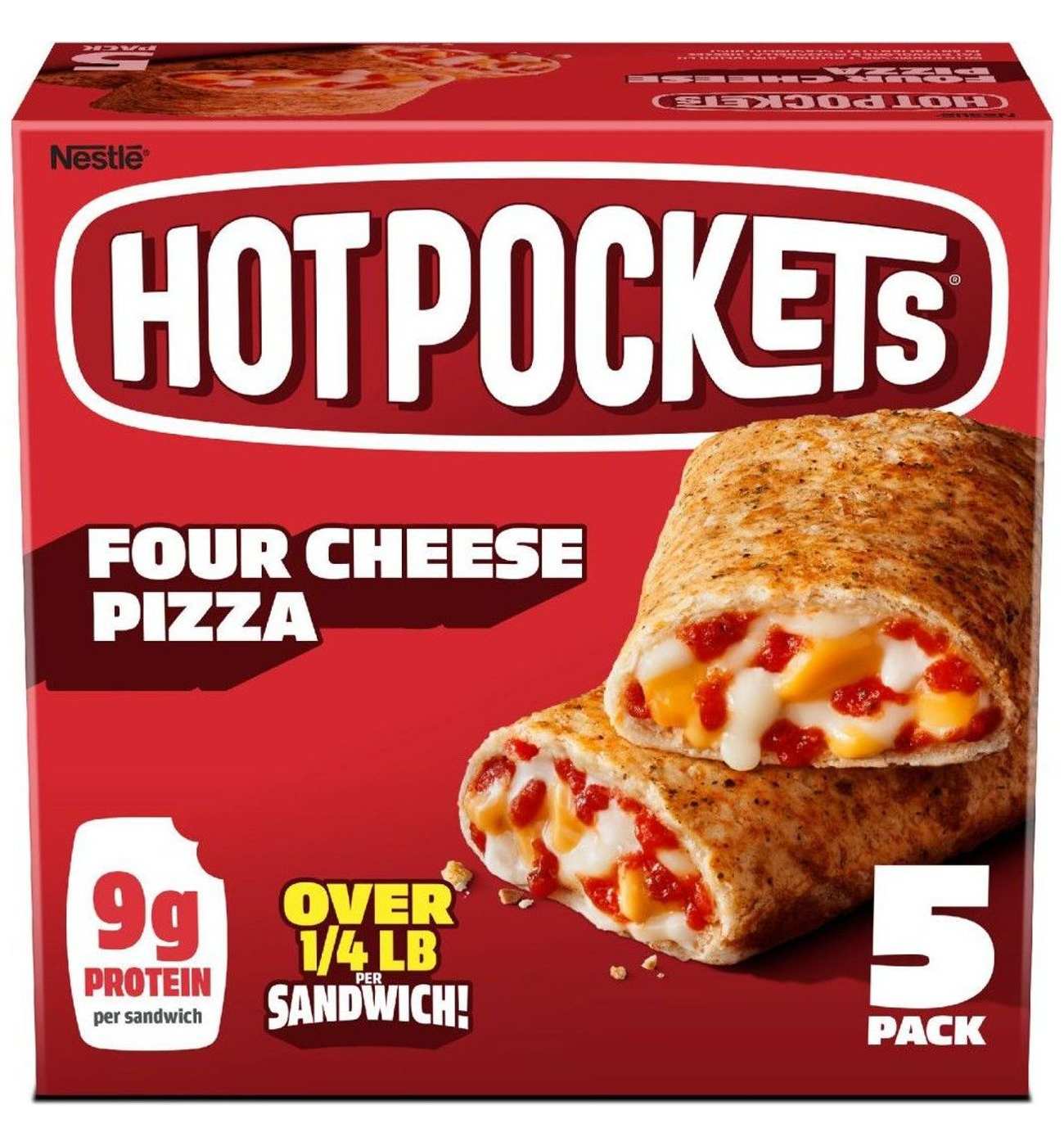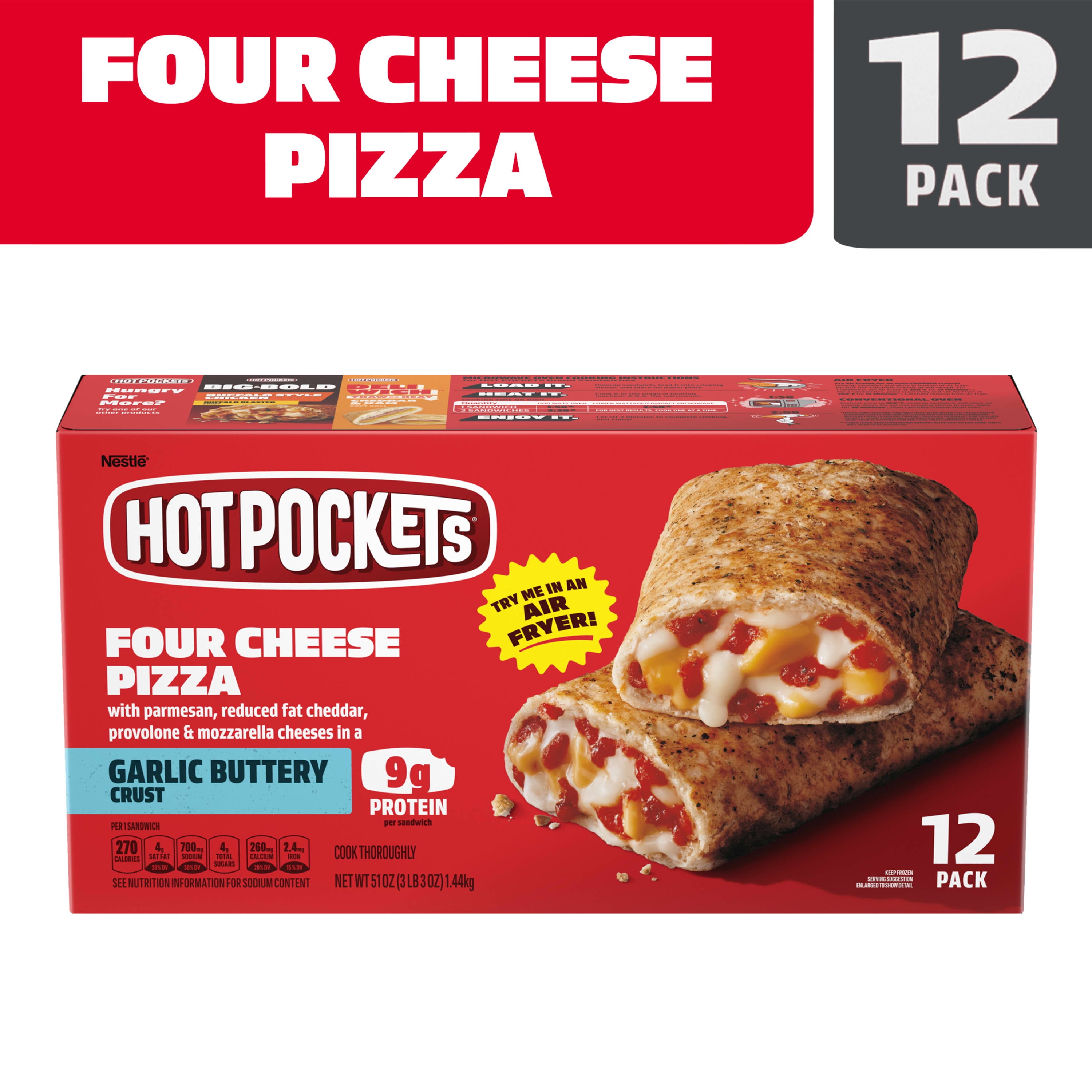Four Cheese Pizza Frozen Sandwich | Official HOT POCKETS® - goodNes Our four cheese pizza Hot Pockets® sandwich is made with real cheeses - parmesan, cheddar, ... 2 Hot Pockets® sandwiches per box. Made with 100% Real Cheese . 10g Protein per Sandwich . ... (120 g) Amount Per Serving; Calories: 280 % Daily Value* Total Fat 11g: 14%: Saturated Fat 4.5g: 23%: Trans Fat 0g: Cholesterol 20mg: 7%: Sodium 710mg ...